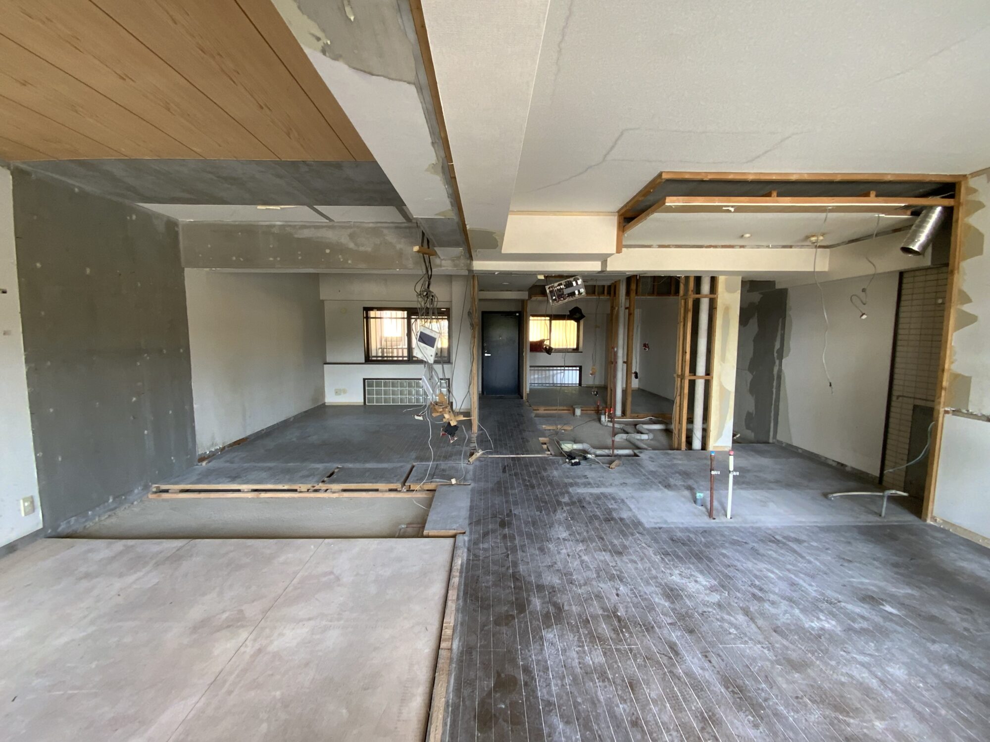 【フルリノベーション】は、一度室内を解体して、間取りや配管、床、建具に至るまで、お部屋全体を刷新することを指します。