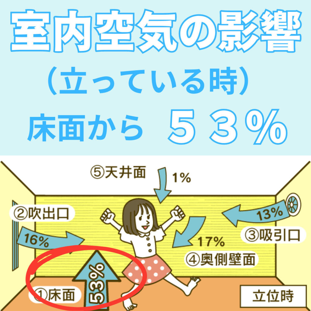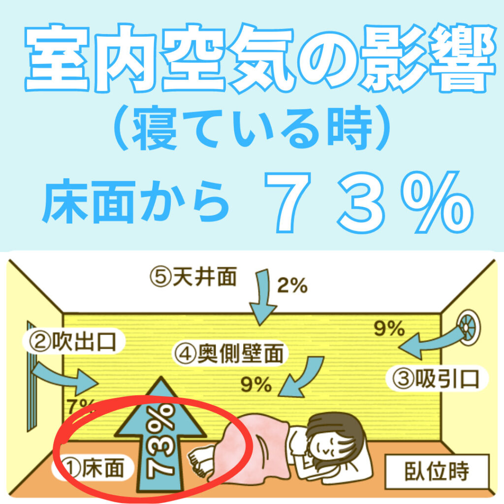 特に、寝ている状態では床面からの空気の影響を73%も受けるのです。