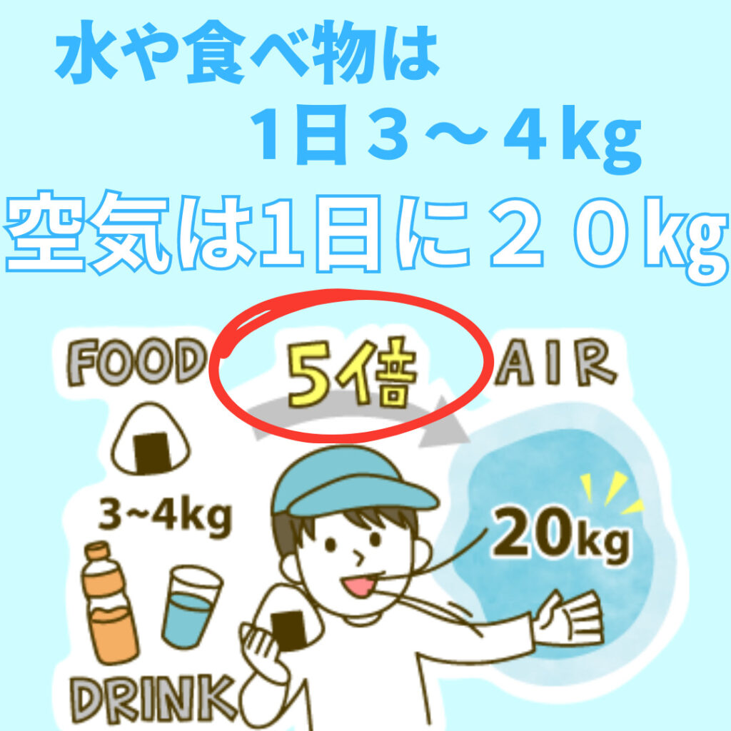 1日当たり、食べ物の5倍ほどの空気を摂取しているのです。
