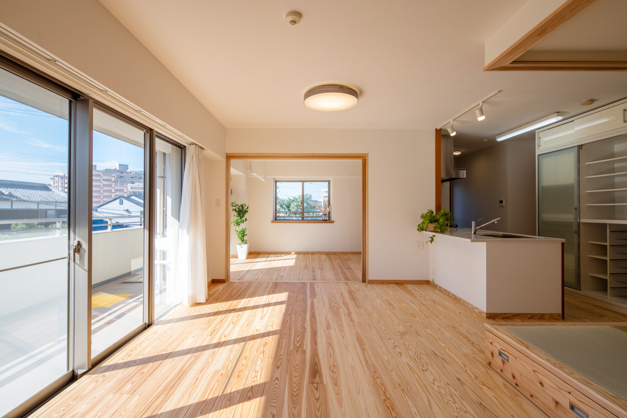 3面のベランダから 青空と爽やかな空気、明るい光を取り込んだお部屋で