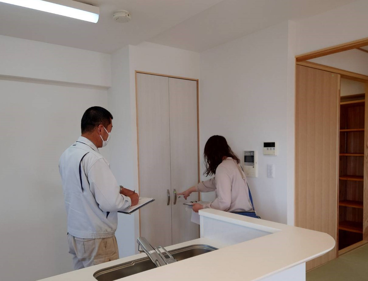 竣工検査が終わったら、カメラマンさんによる物件の写真撮影に入り、お客様にお引き渡しする前に、建築士さんによる建物や室内の検査を再度行います。