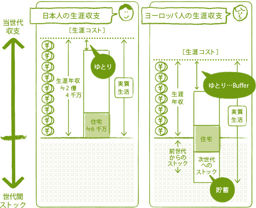 次世代へと継いだ住まいは、各代で改修等は必要ではありますが、新しく住まいを購入する必要が無いという事ですので、住宅購入資金を準備する必要がなく、その分生活にゆとりが生まれます。