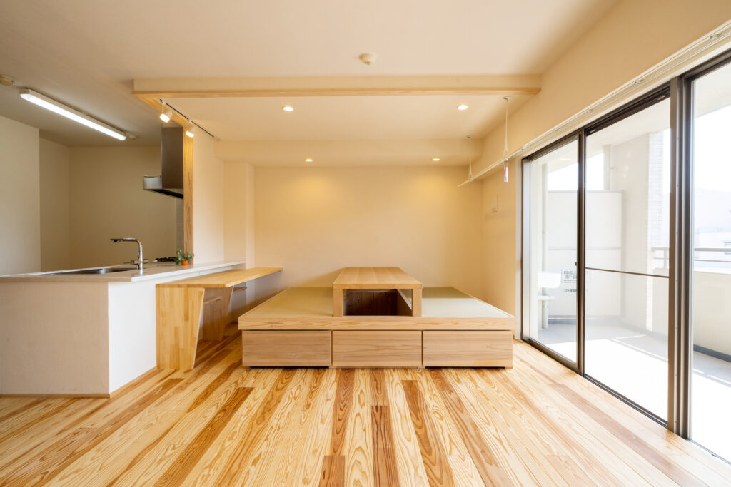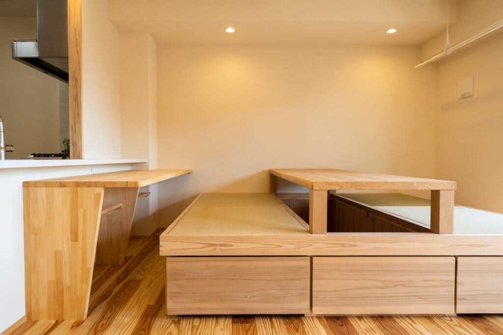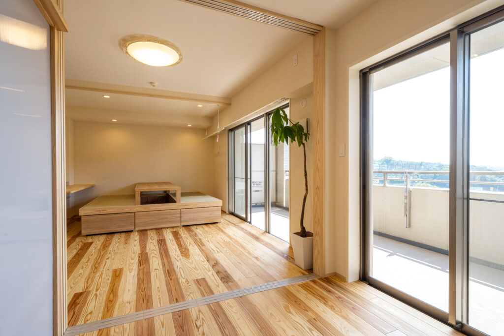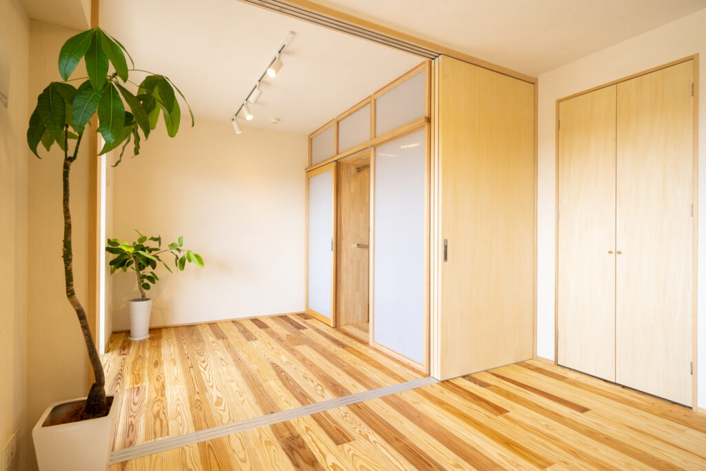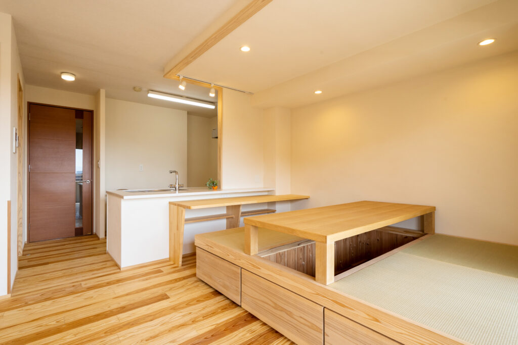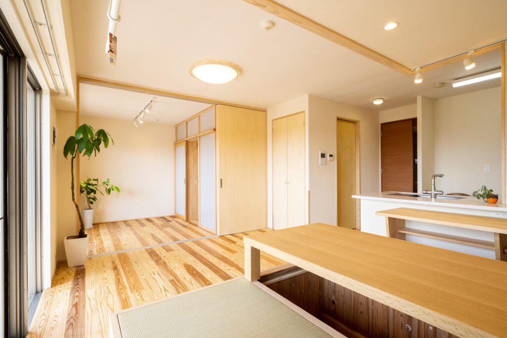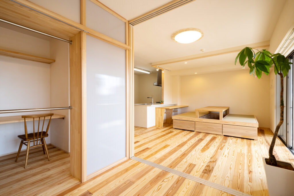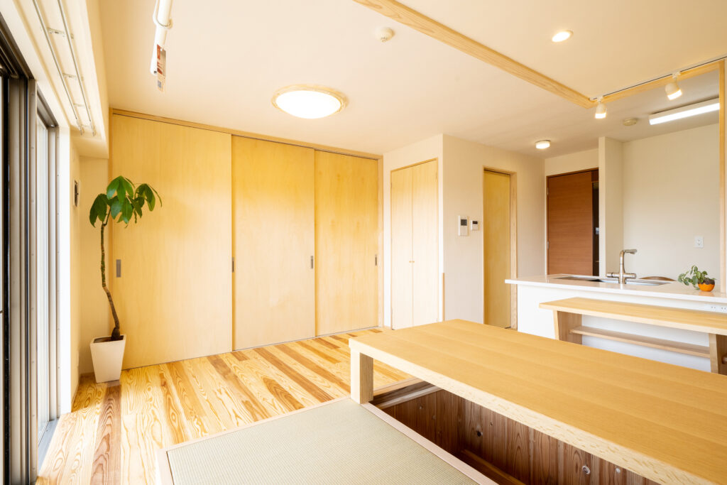 千早駅南07_グレーが和リビングと庭と家族を繋げる家