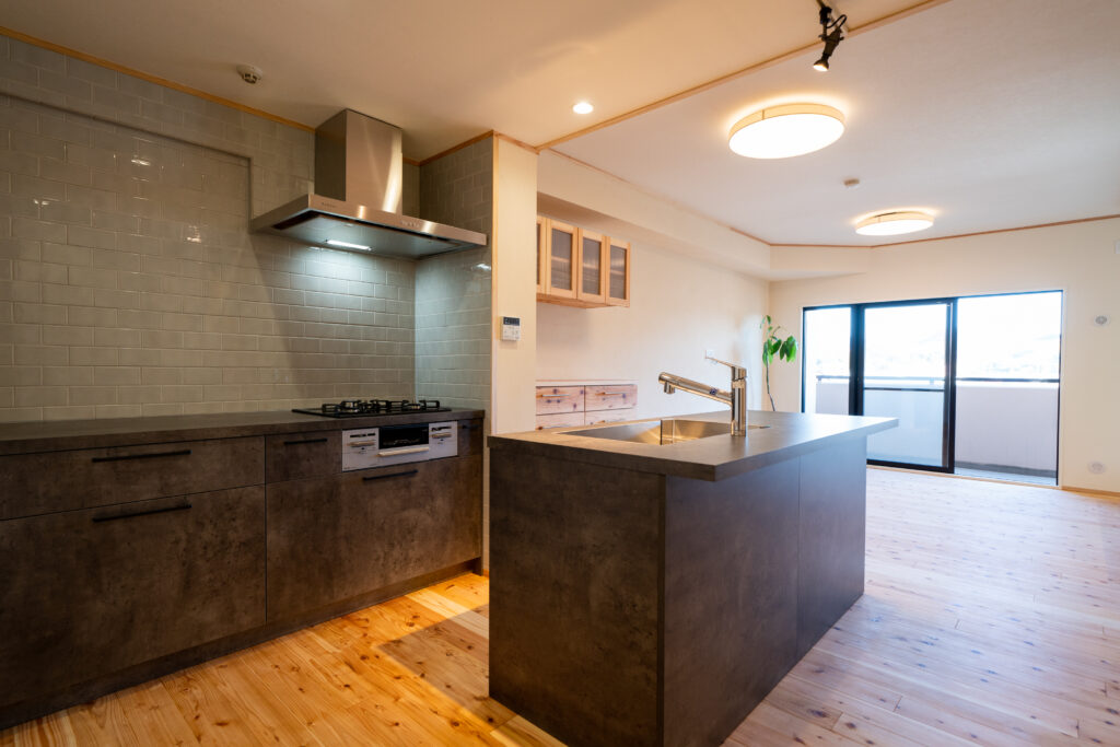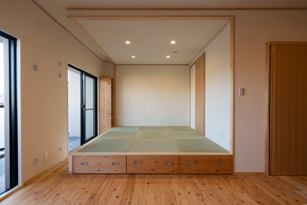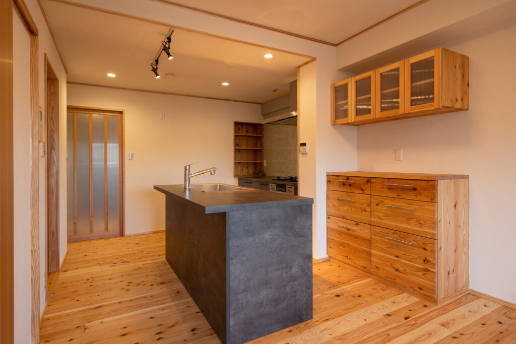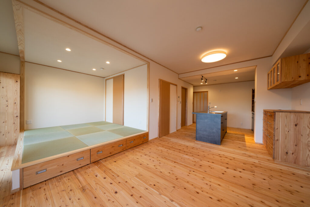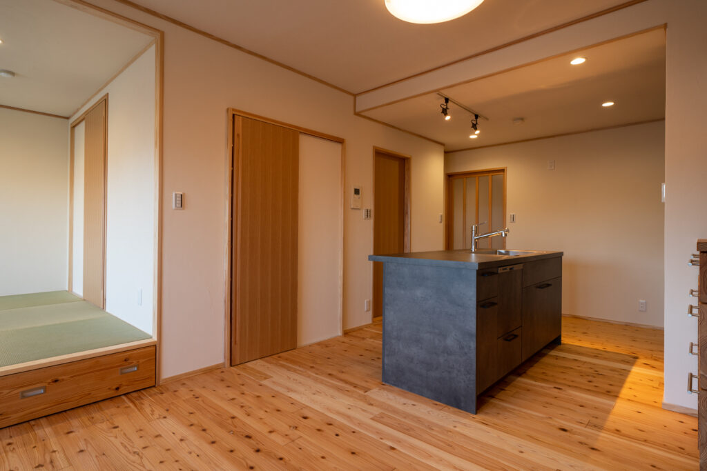 千早駅南07_グレーが和リビングと庭と家族を繋げる家