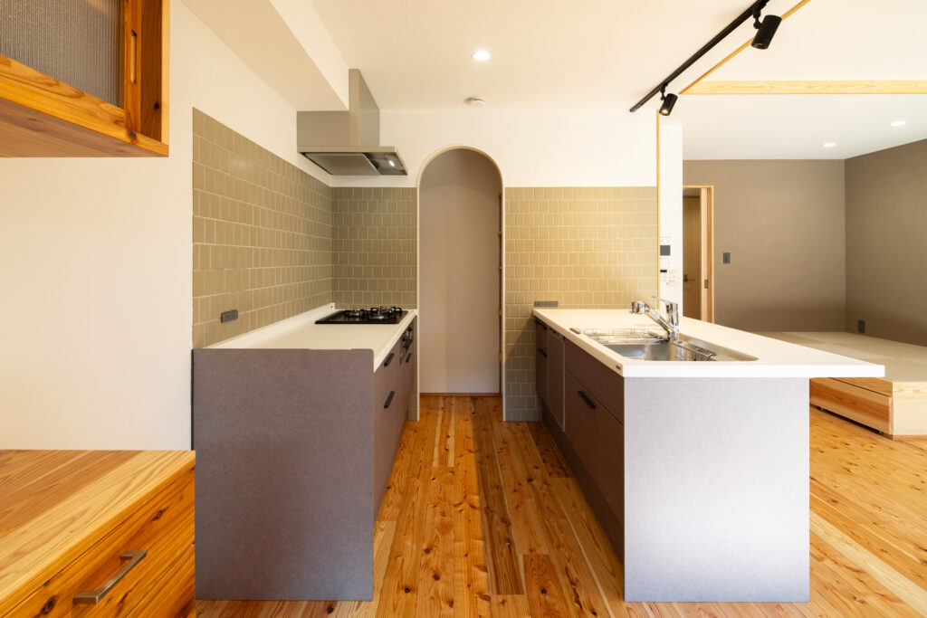 香椎01‗参道の翠と蒼い空をキッチンから臨める家